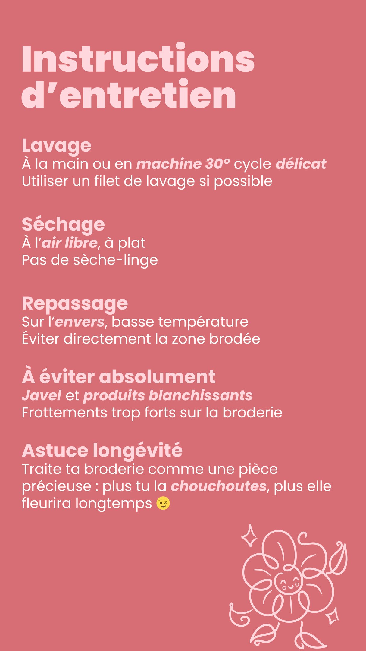 Pour prendre soin de votre bandeau brodé, j’ai préparé une fiche simple